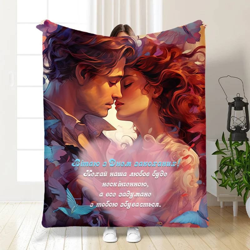 Плед 3D з побажаннями "Вітаю з Днем Закоханих" 15582 135х160 см yL.