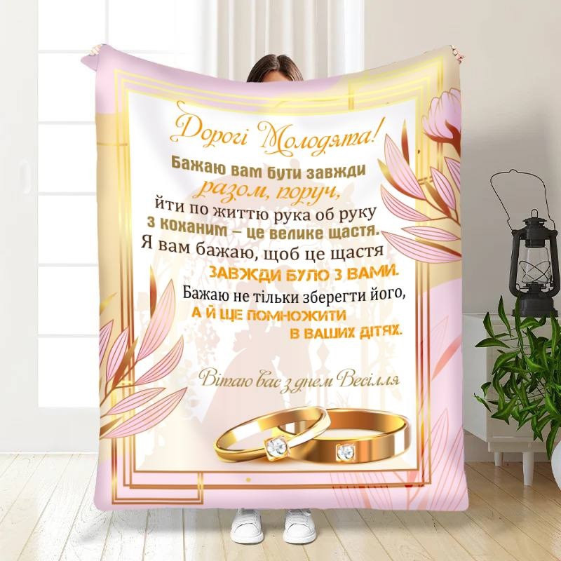 Плед 3D з побажаннями для молодят на весілля Щастя і затишок 16188 135х160 см yL.